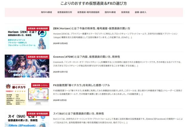 「こよりのおすすめ仮想通貨&FXの選び方」では、仮想通貨や暗号資産取引の銘柄の将来予測や取引所、FX取引の情報などを解説しています。